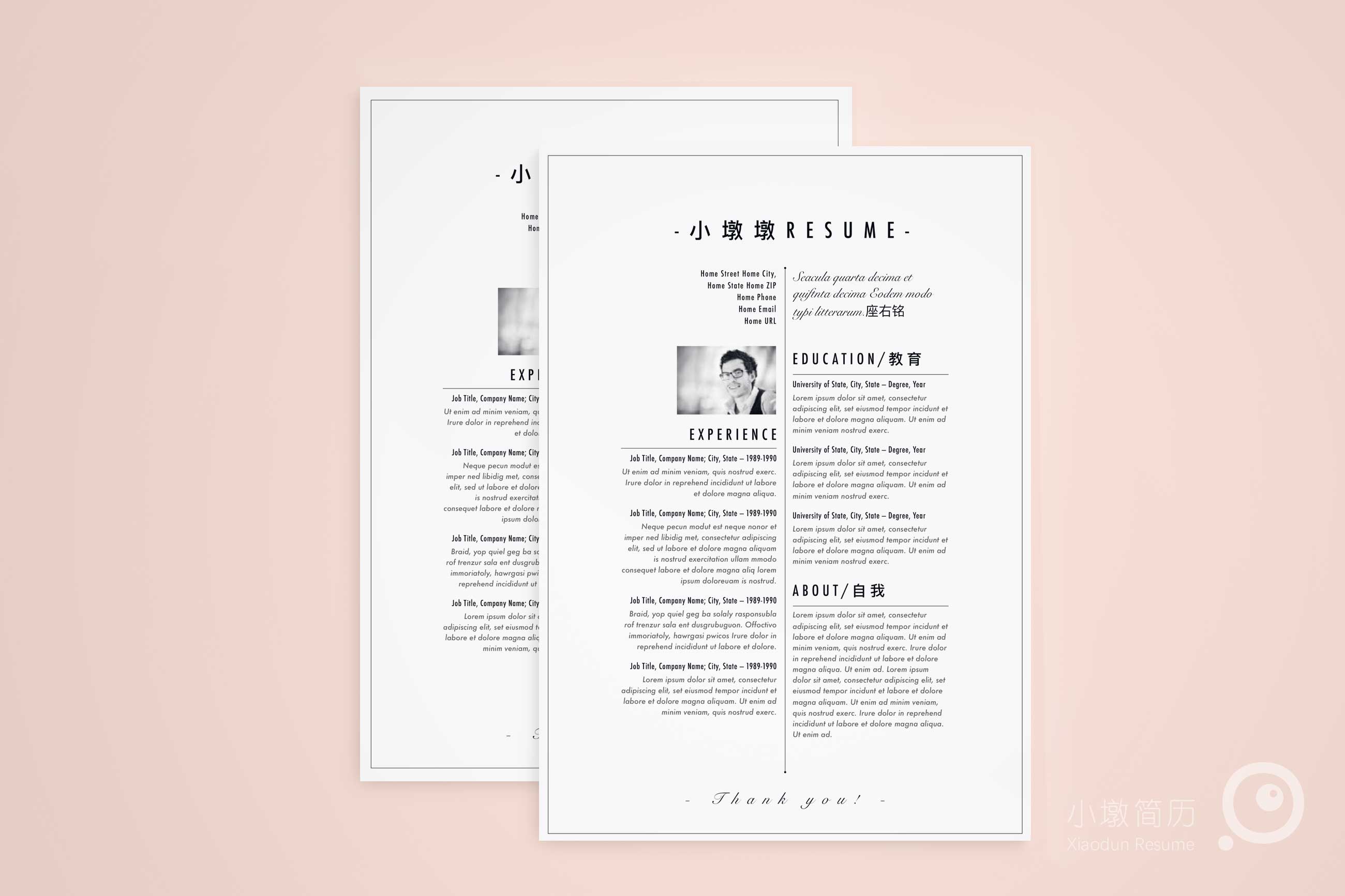 国际简约英文简历word模板 小墩简历|word简历模板|ppt简历模板