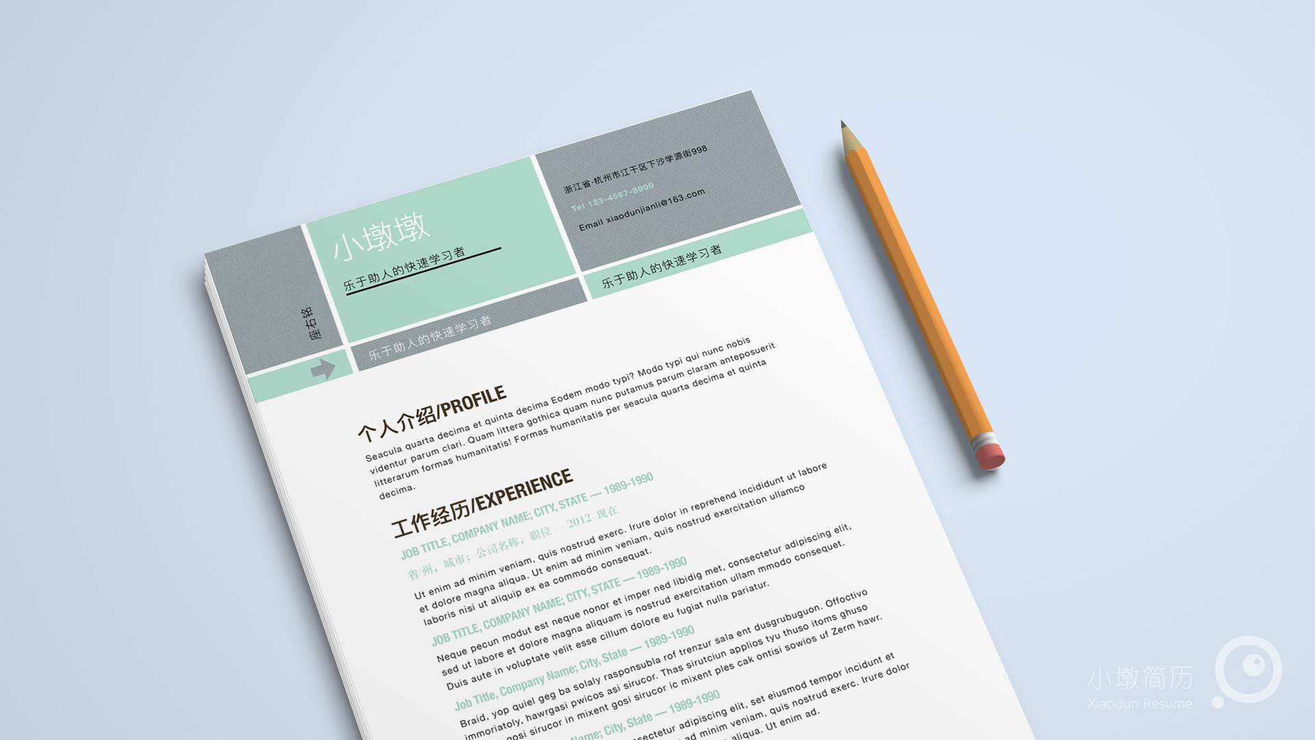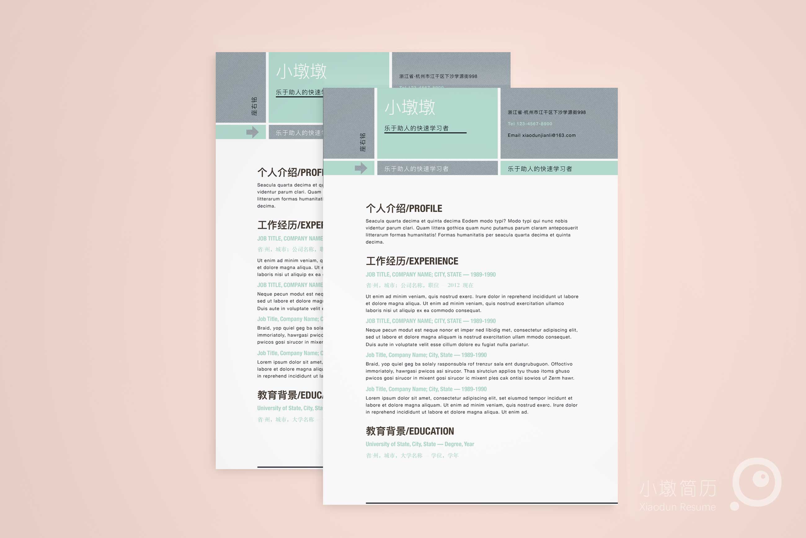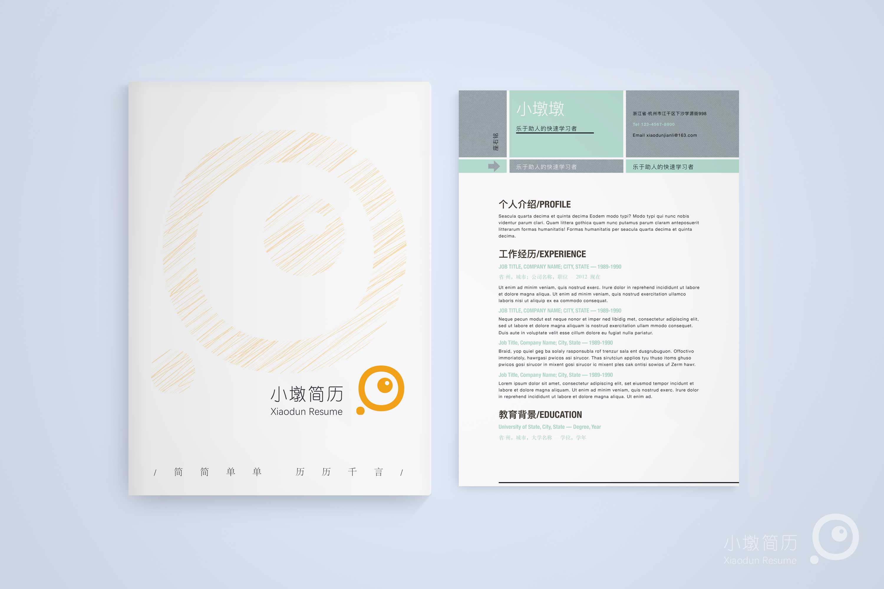 简约素雅简历word模板 小墩简历|word简历模板|ppt简历模板