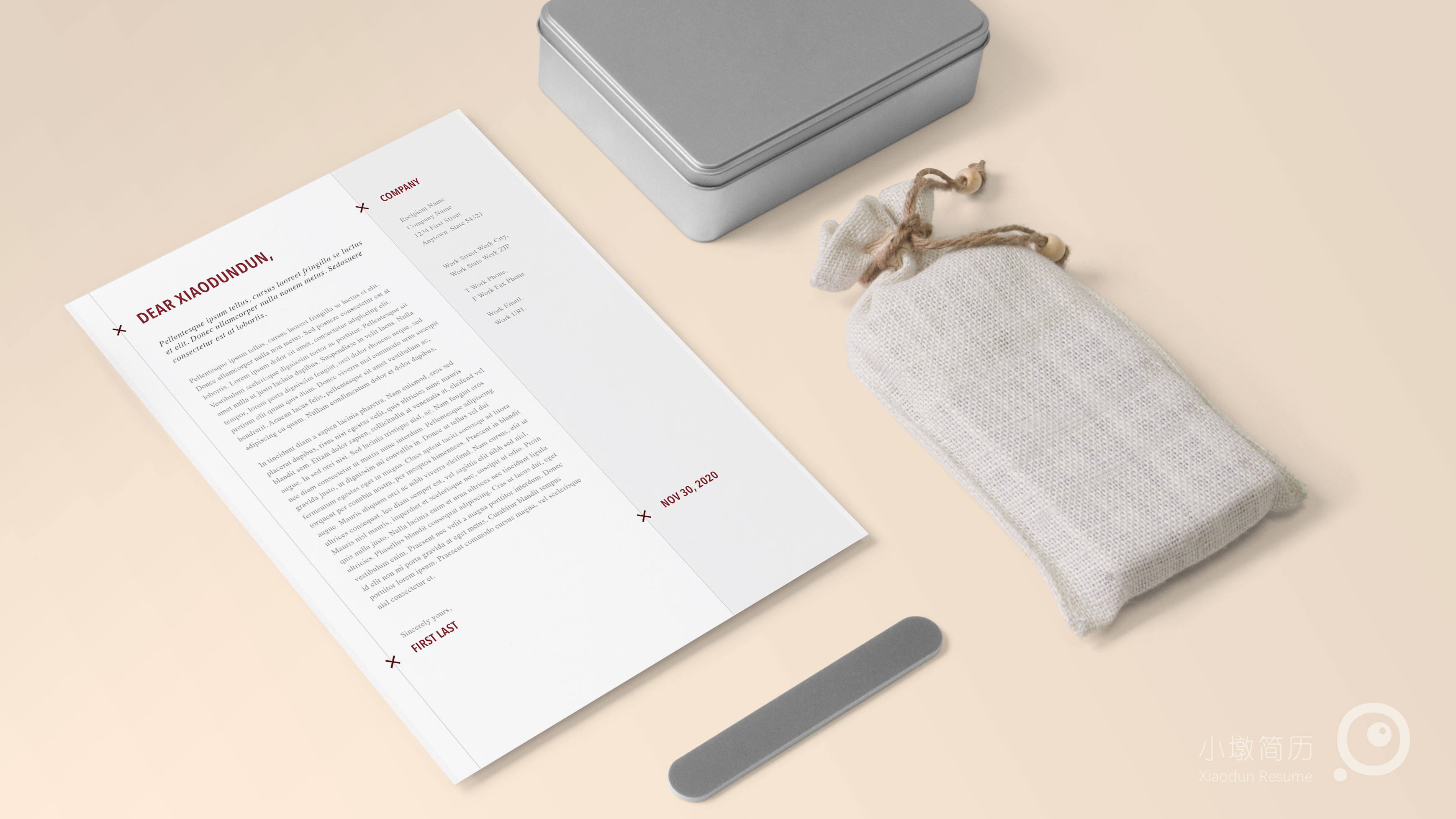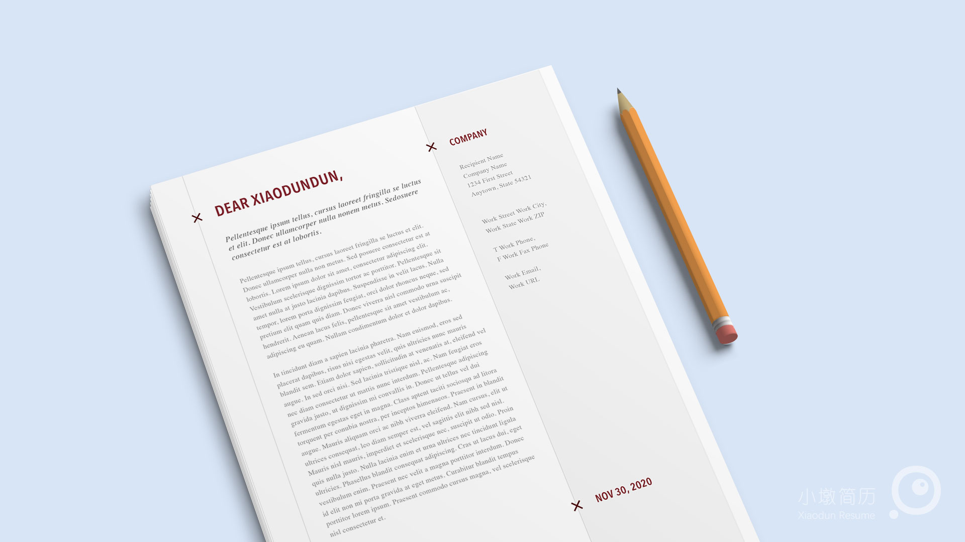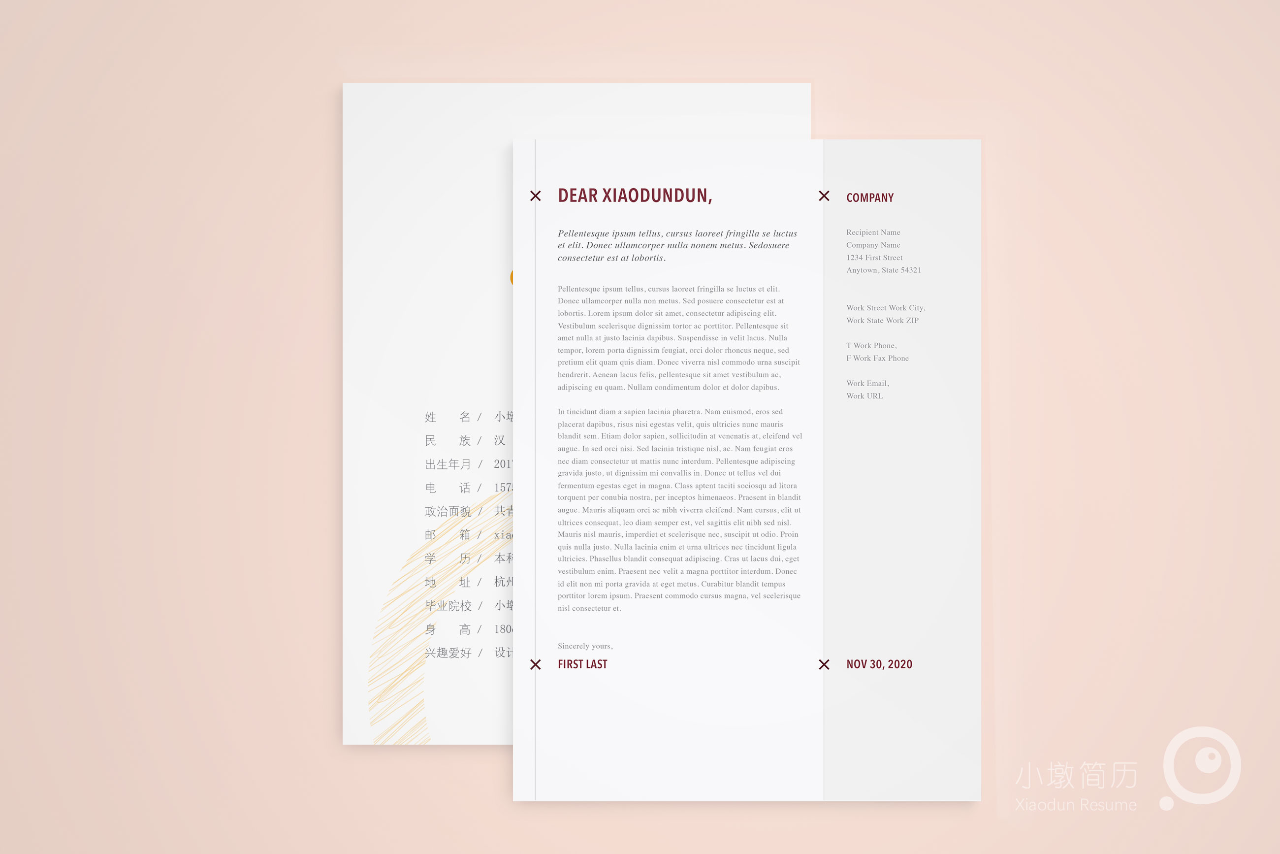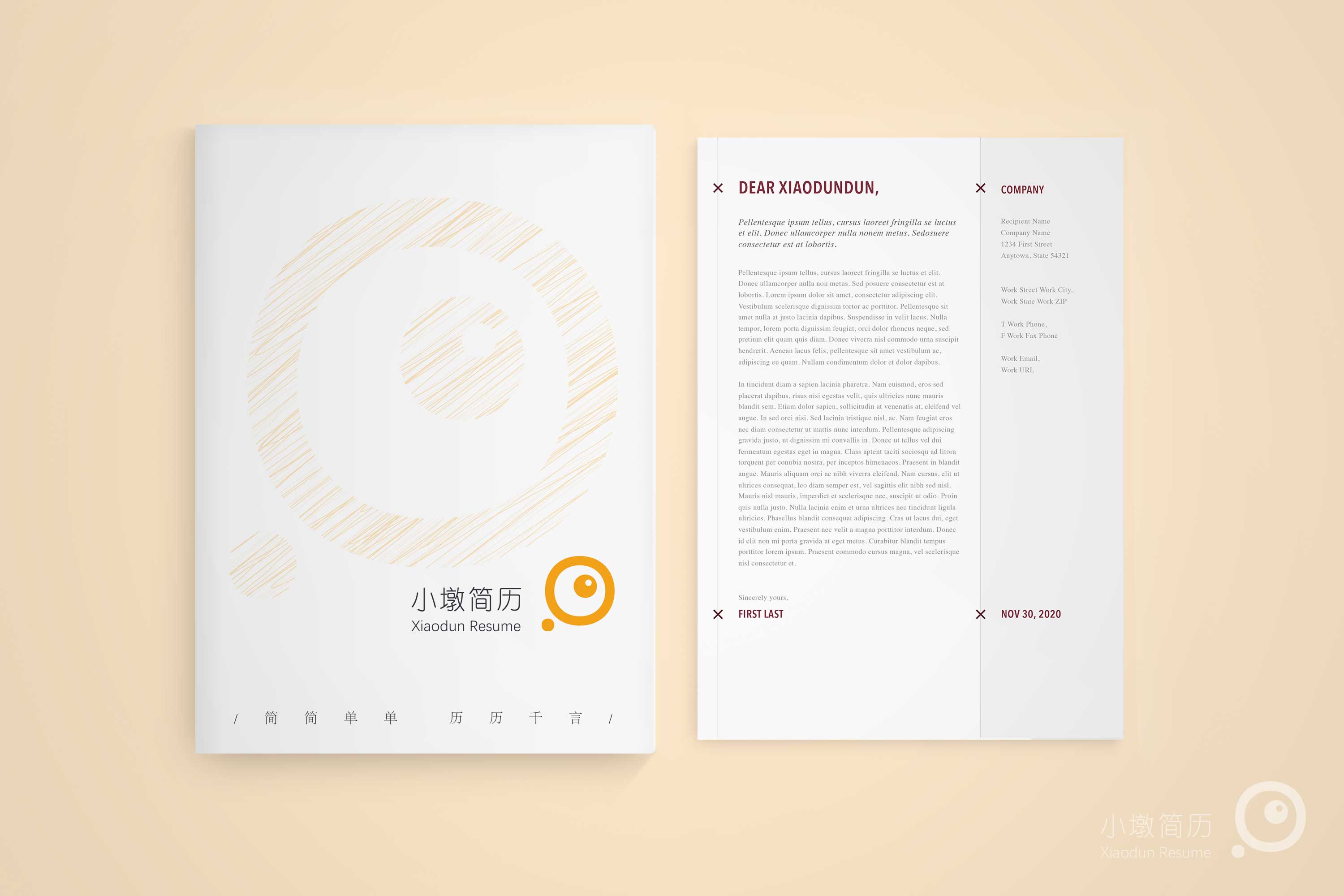 英文简洁分栏自荐信书信 小墩简历|word简历模板|ppt简历模板