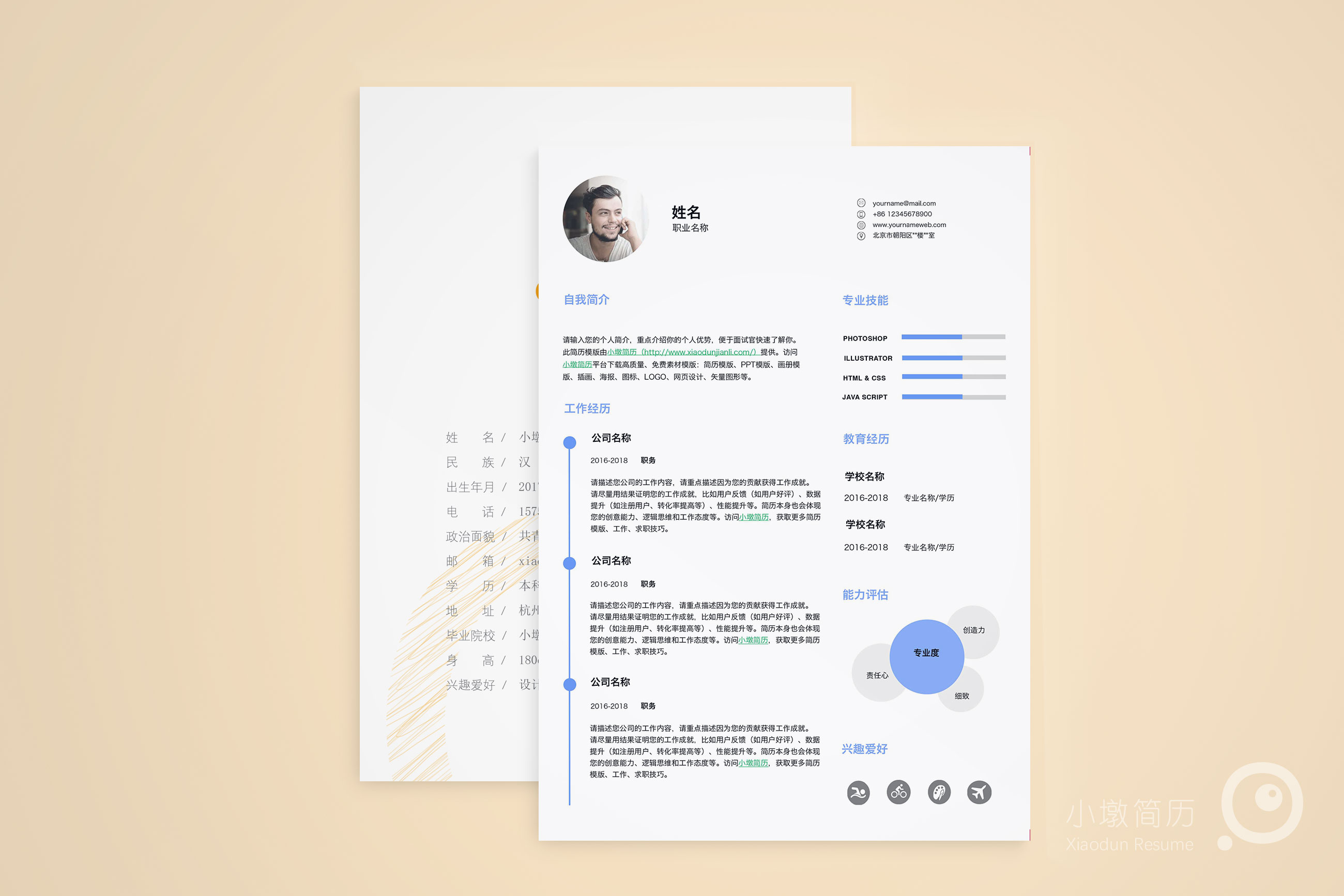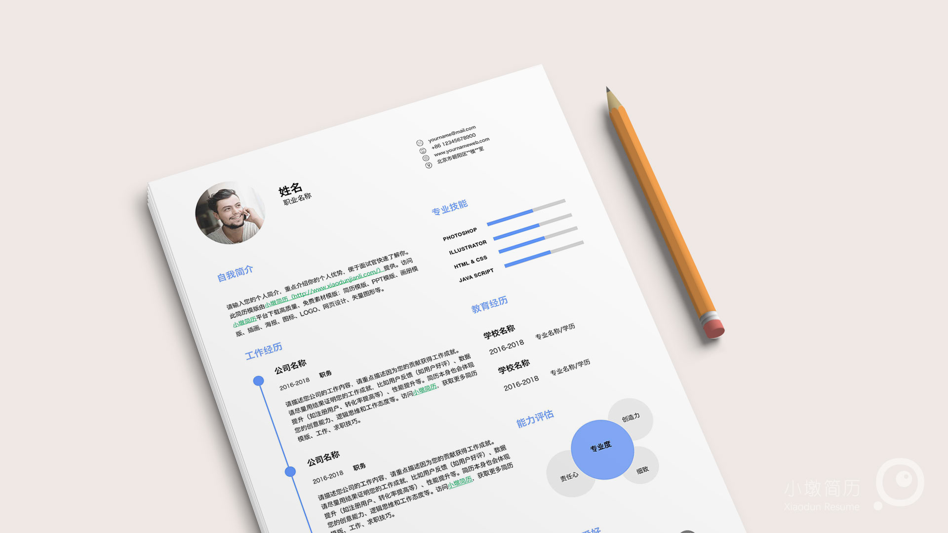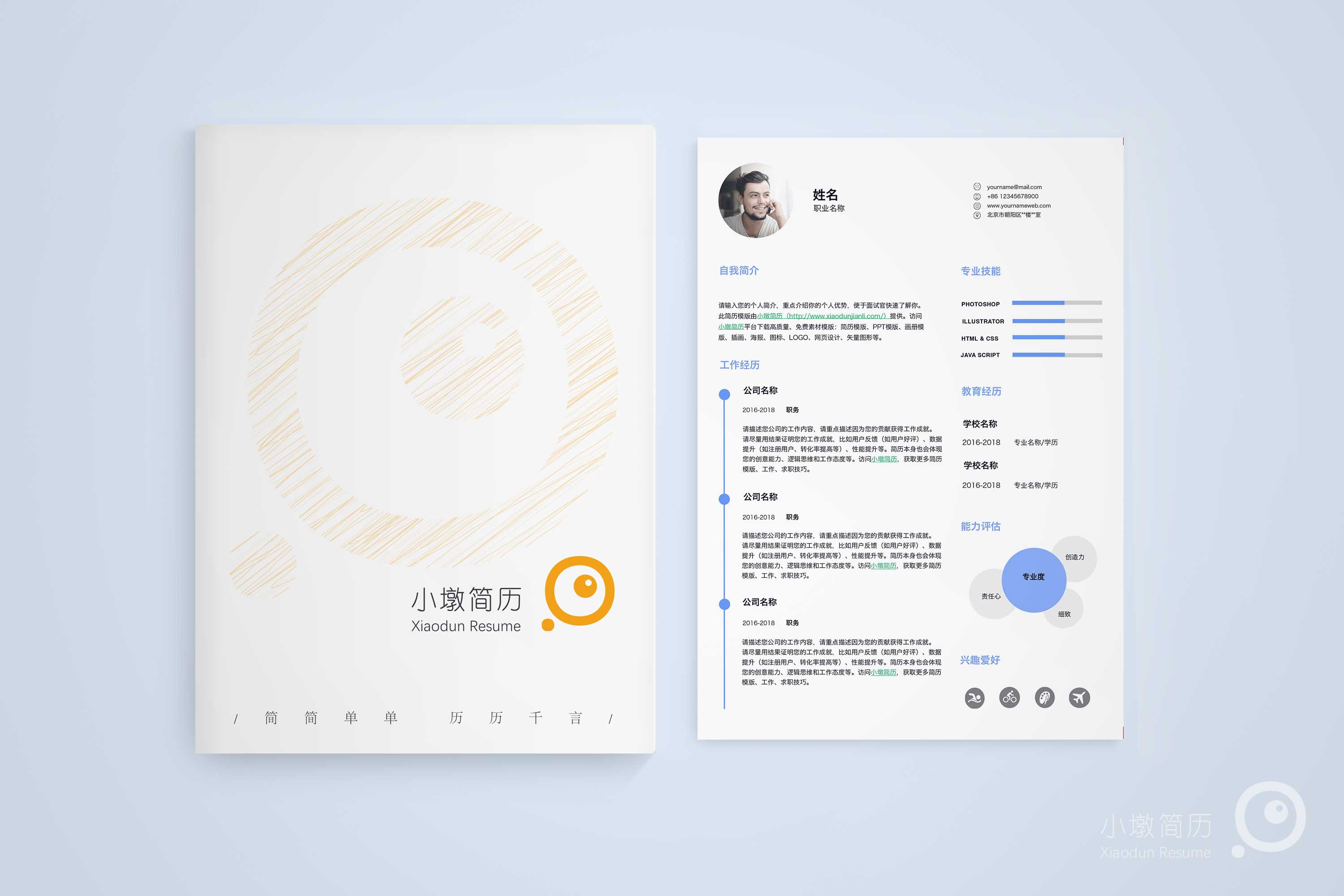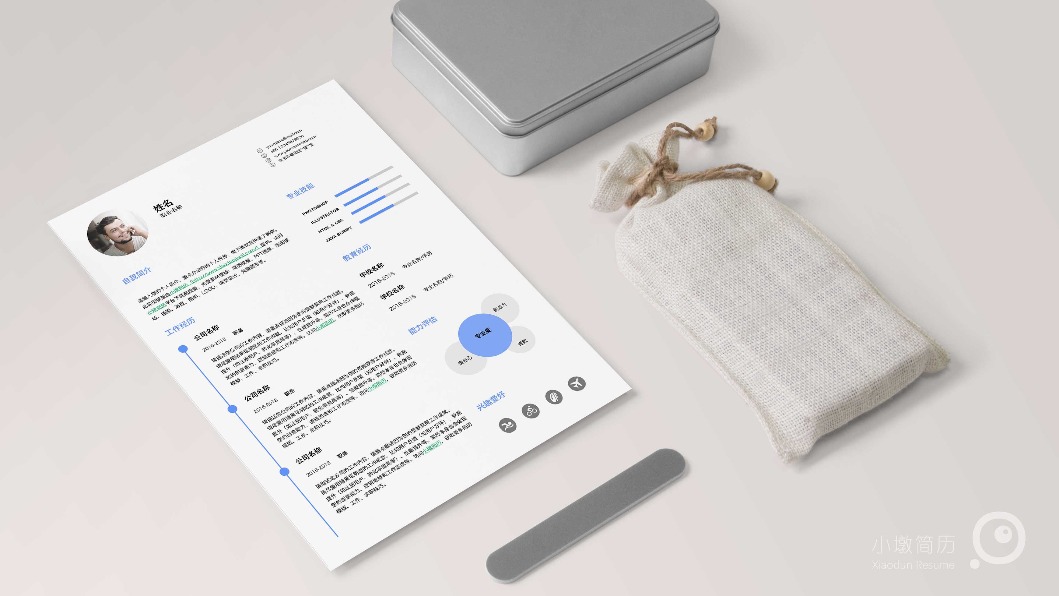 XDW864蓝色分栏式简历 小墩简历|word简历模板|ppt简历模板