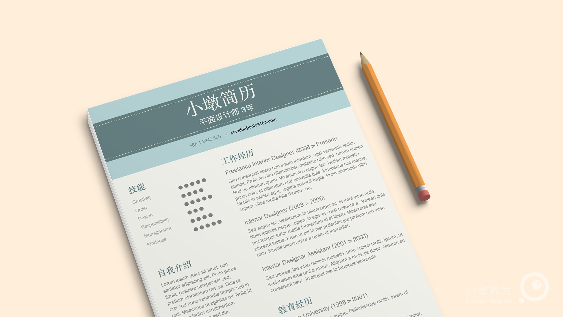 XDW883 浅色淡雅分栏式简历模板 小墩简历|word简历模板|ppt简历模板