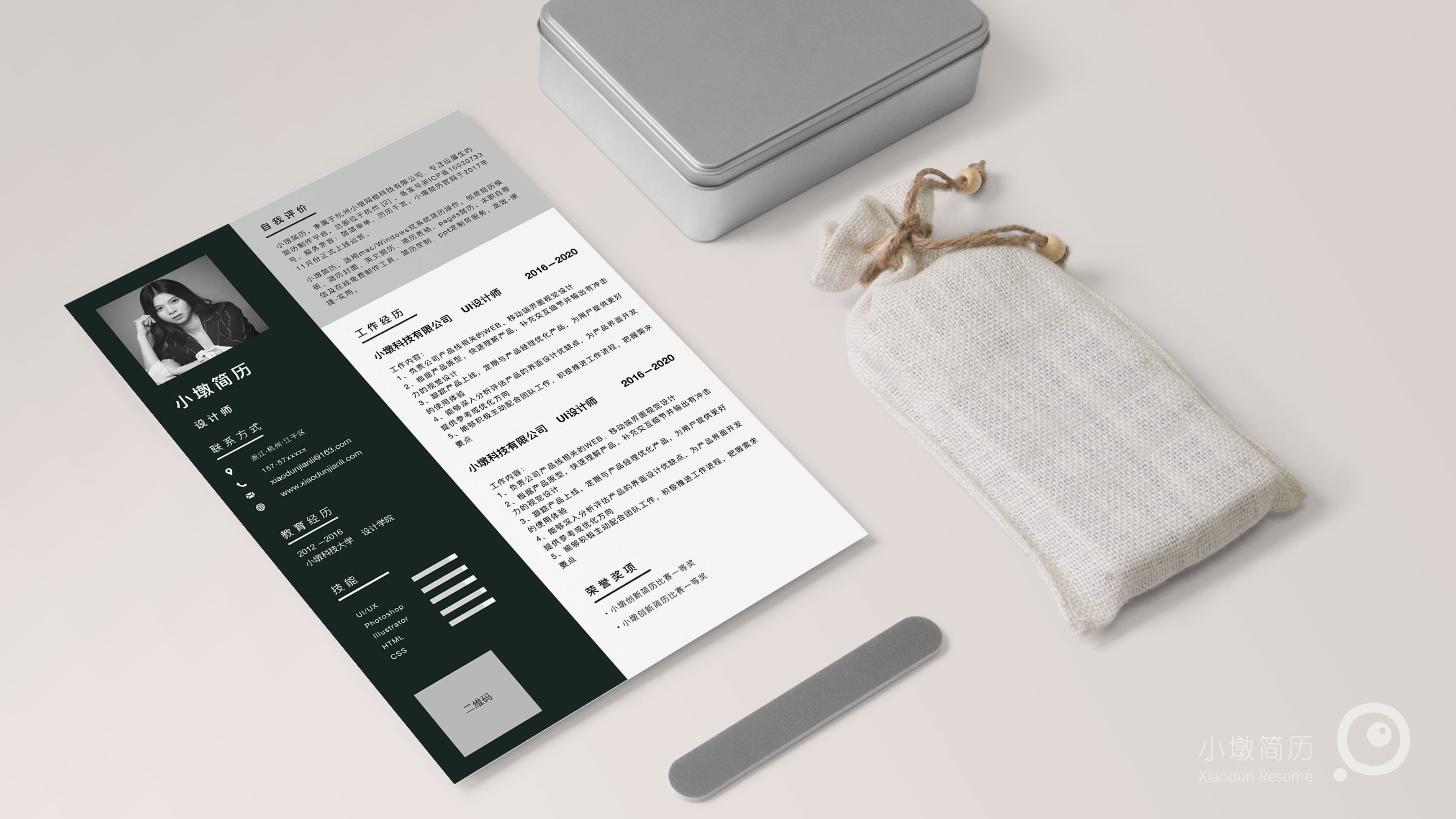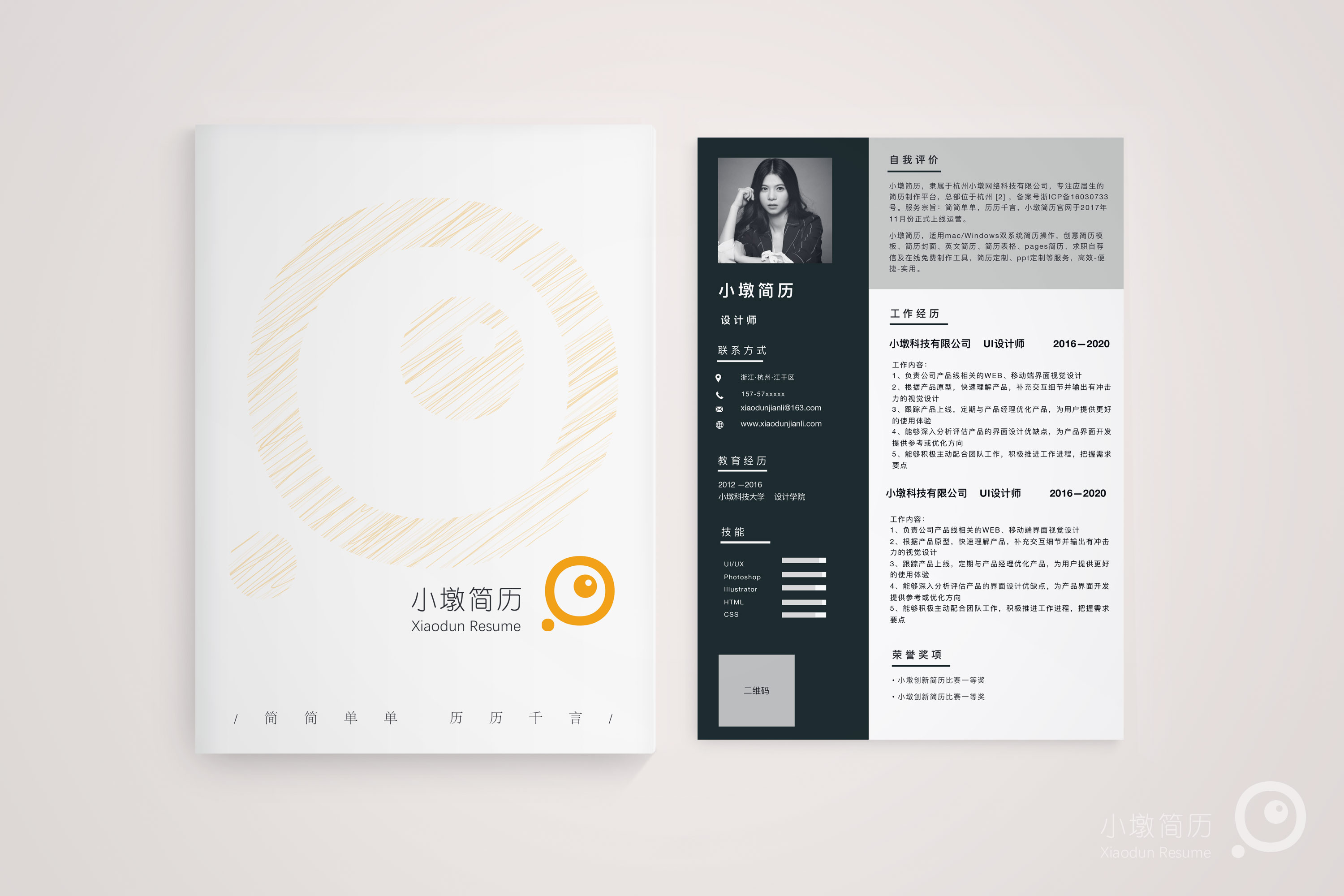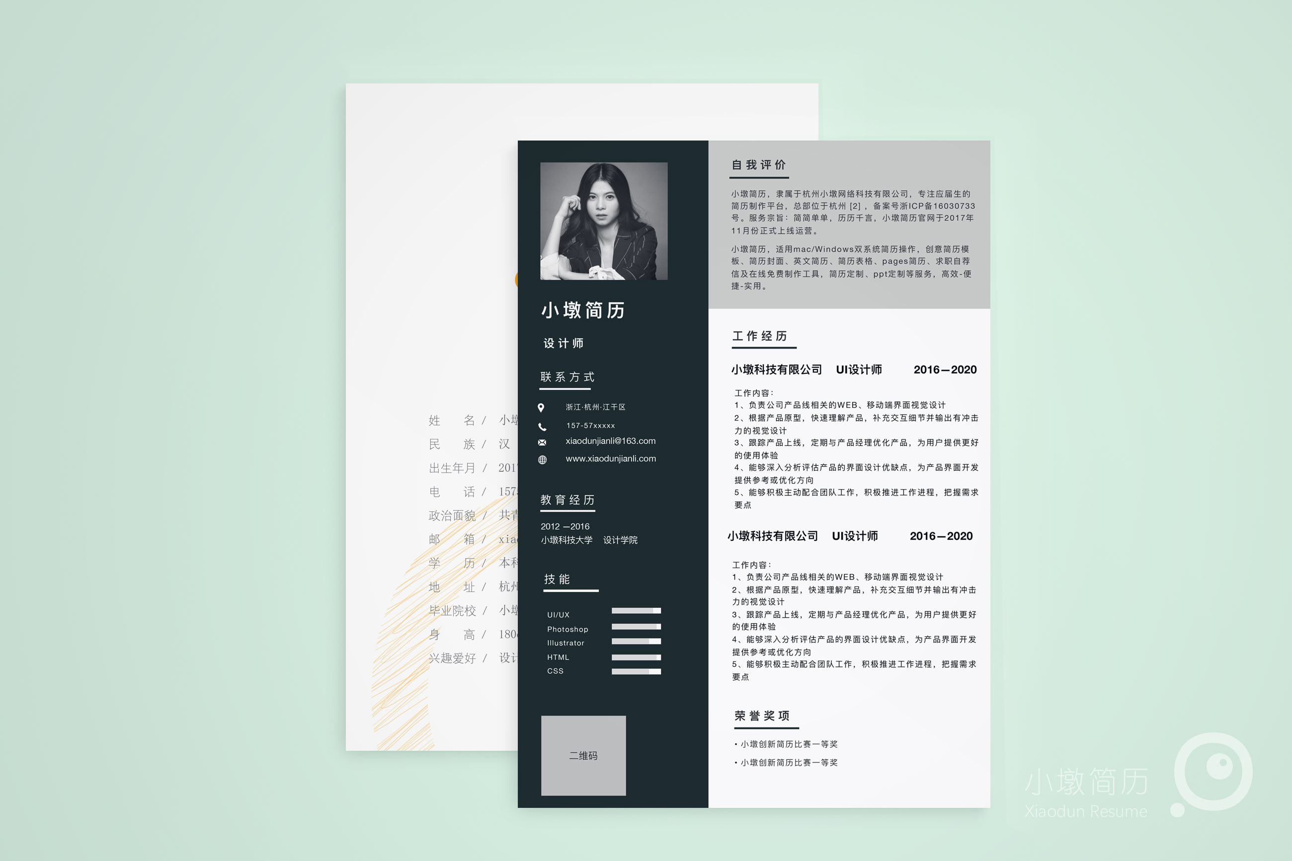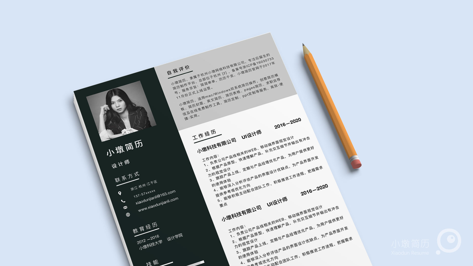 分栏深色简历模板 小墩简历|word简历模板|ppt简历模板