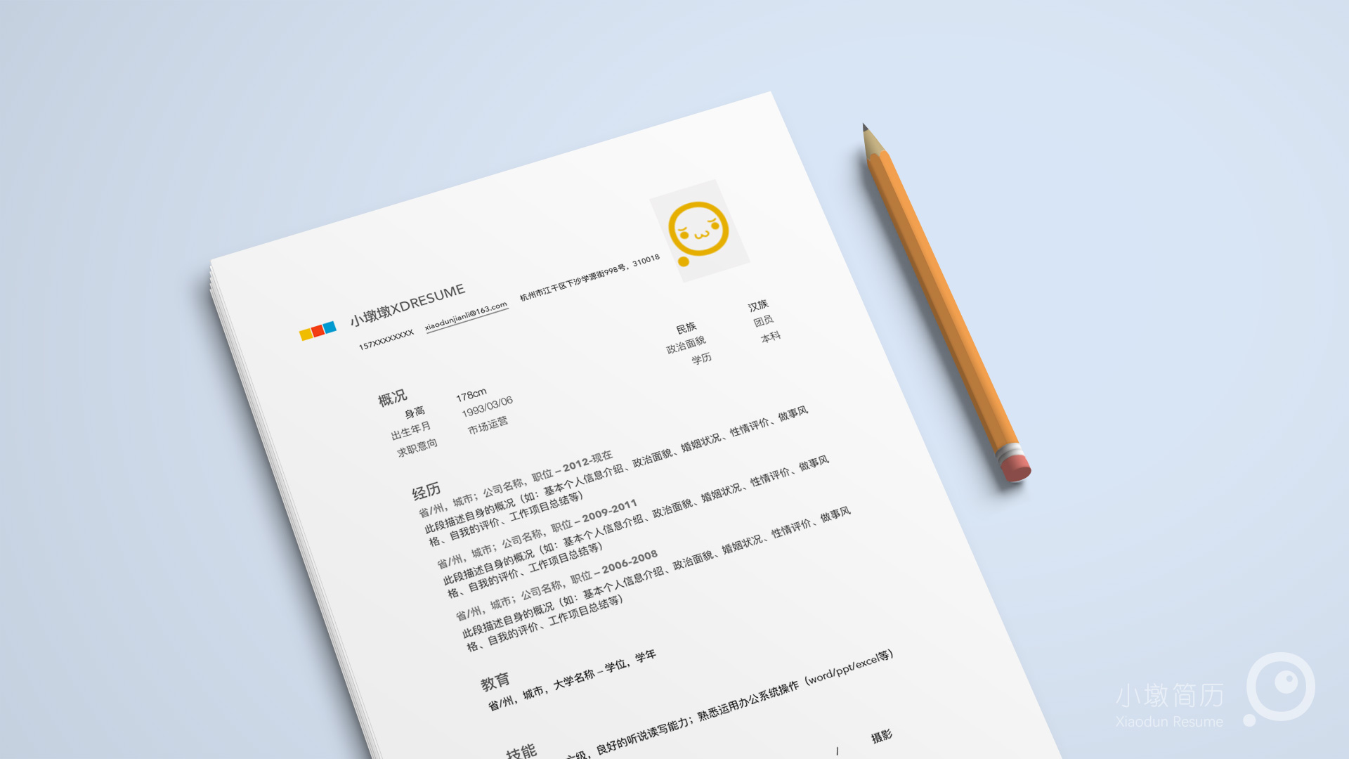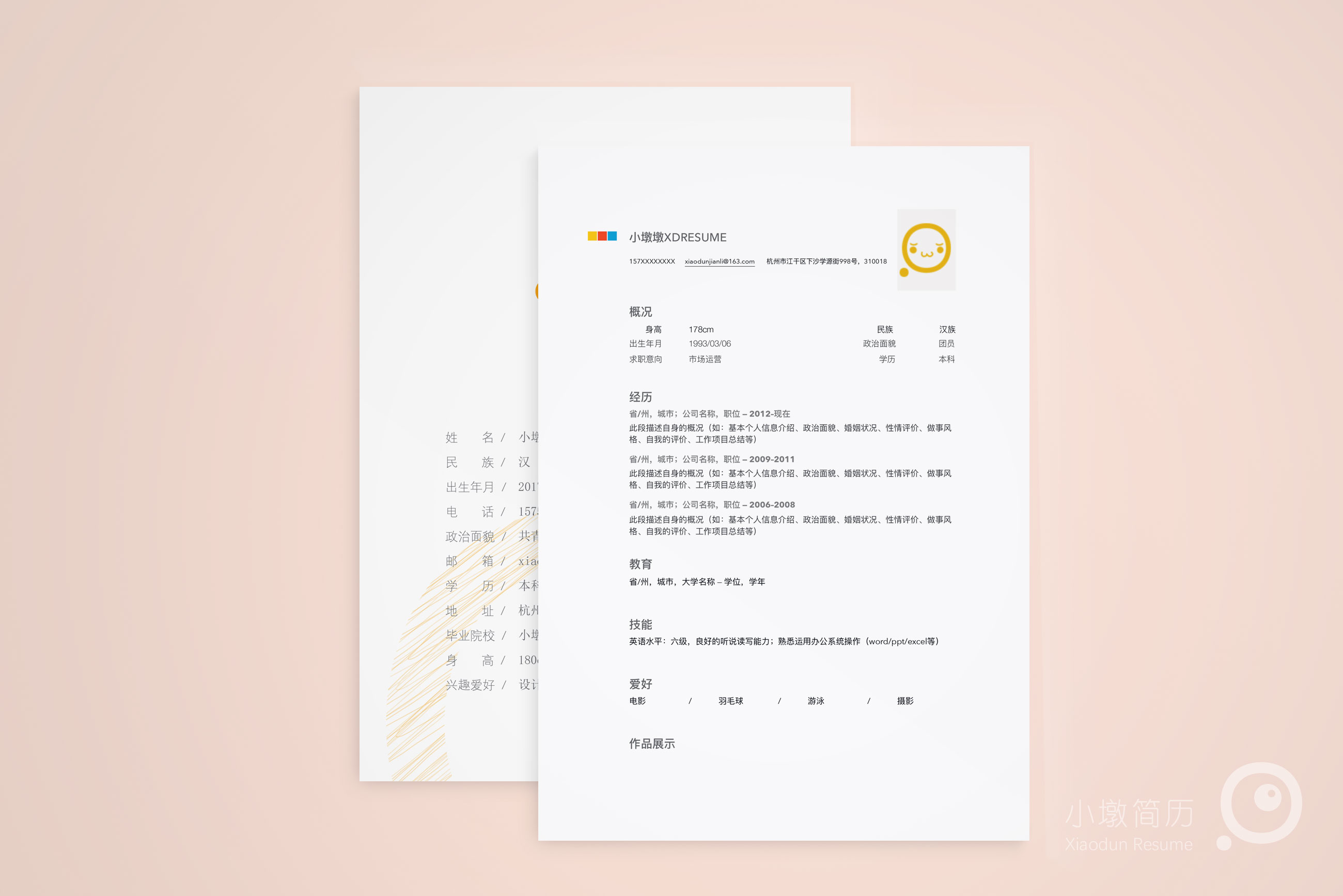 精致商务简历word模板 小墩简历|word简历模板|ppt简历模板