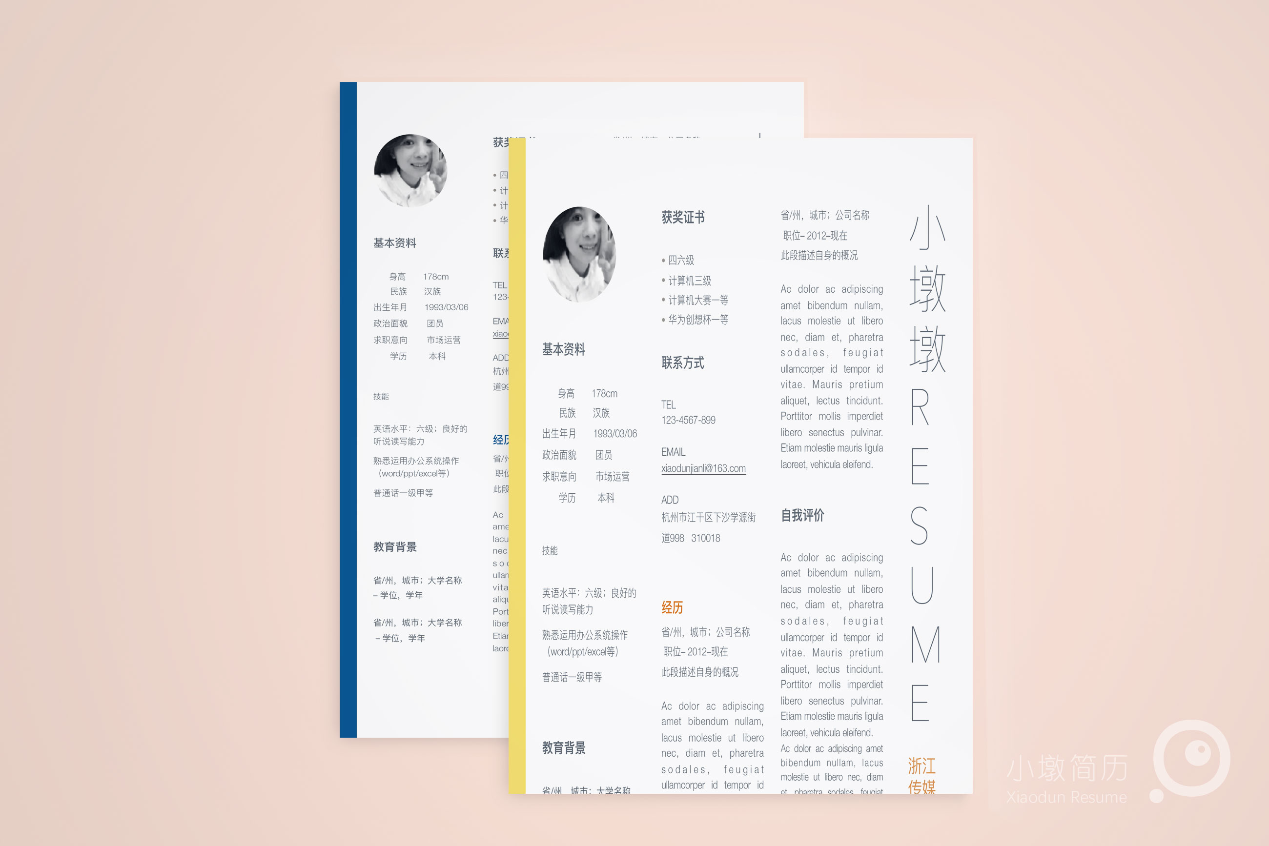 简约日系分栏式简历word模板 小墩简历|word简历模板|ppt简历模板