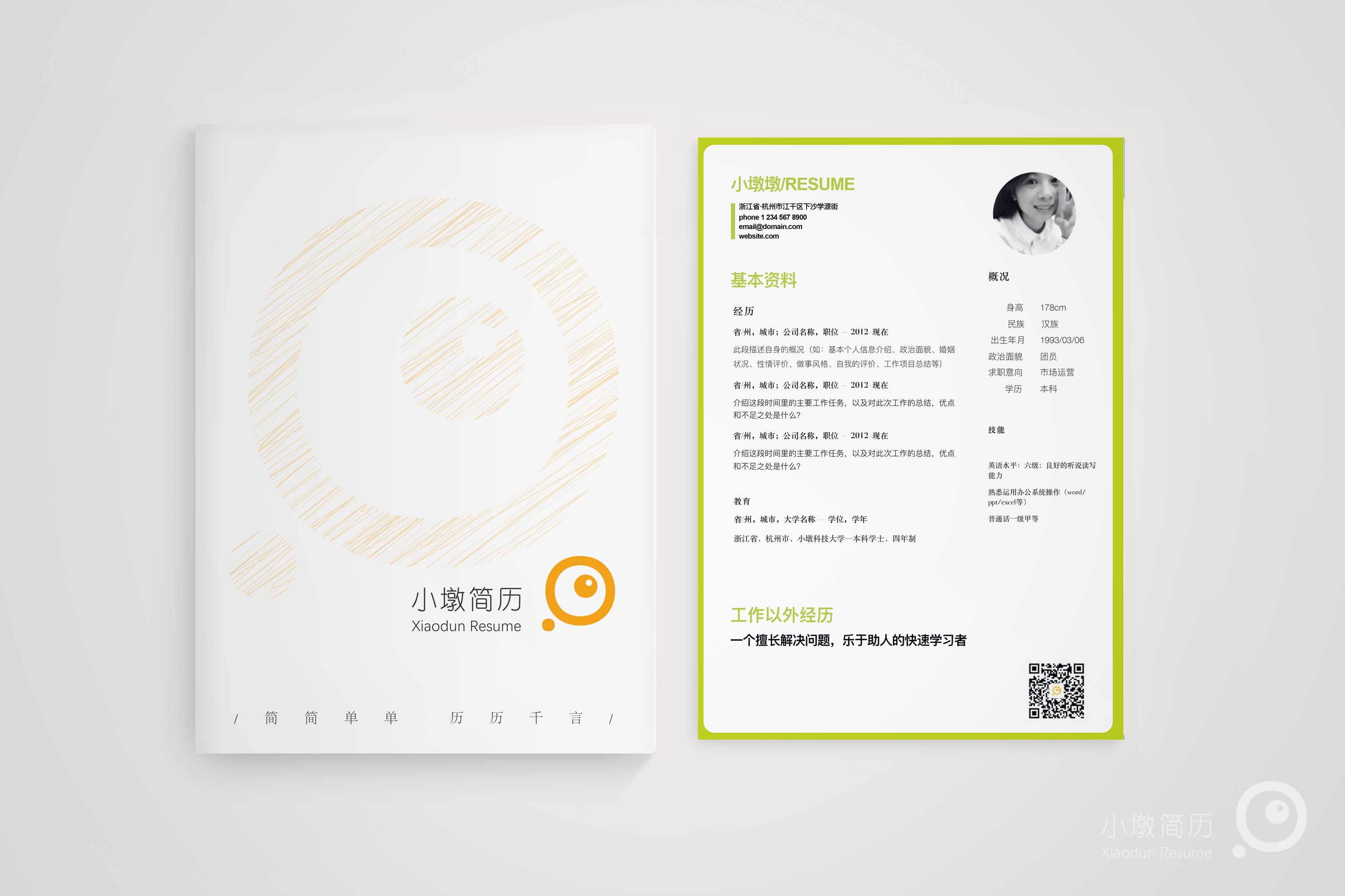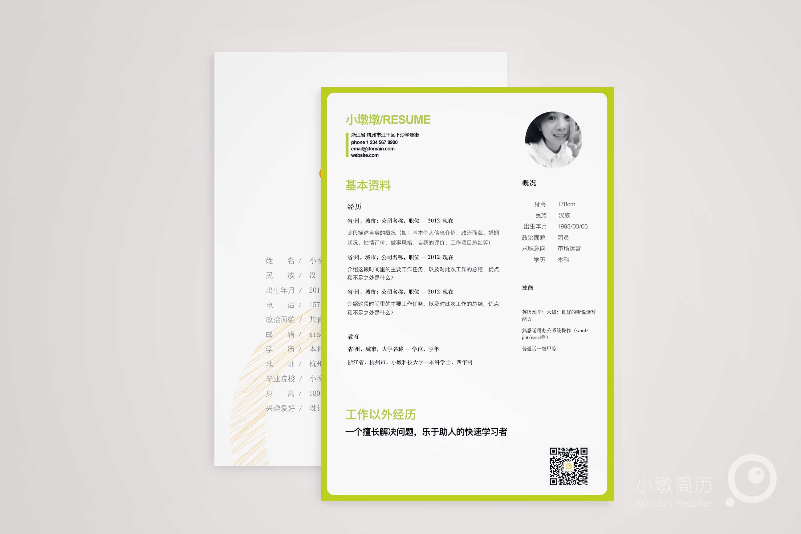 清新边框简历绿色word模板 小墩简历|word简历模板|ppt简历模板