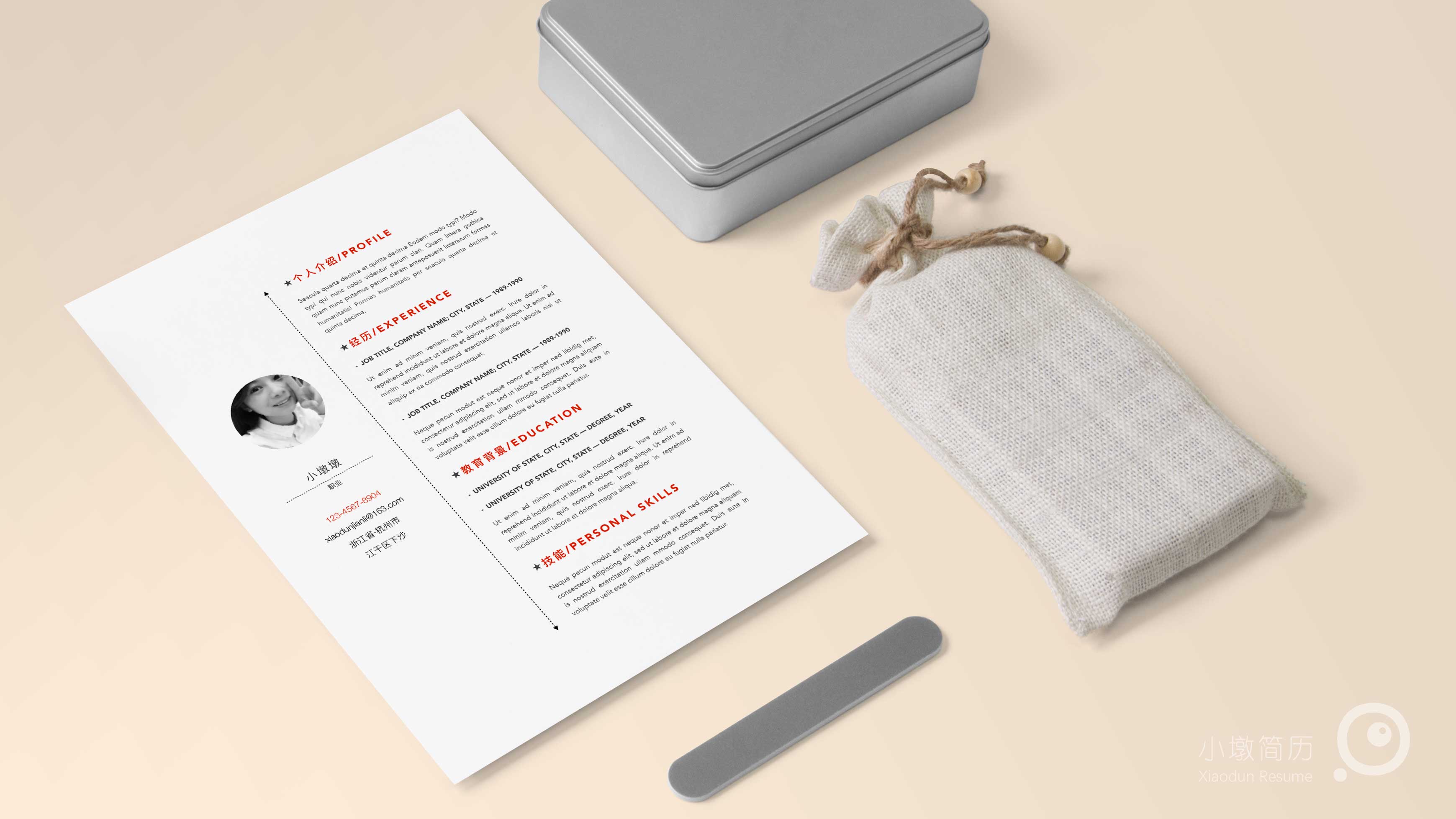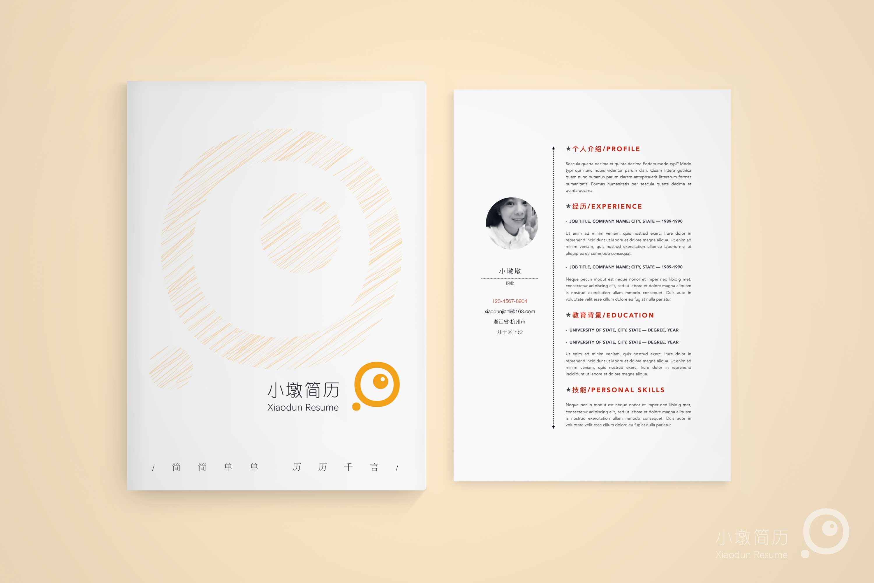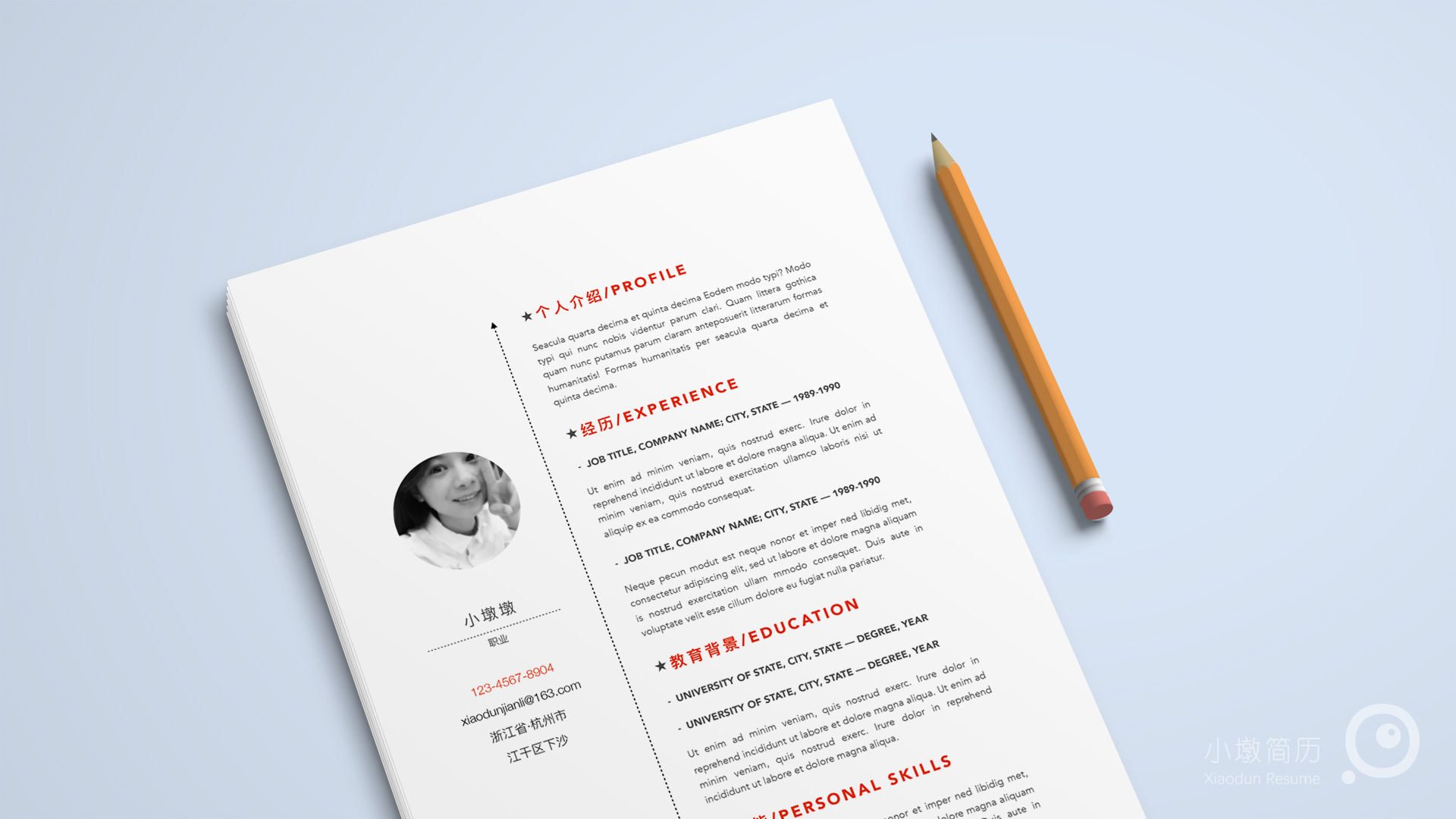 简约素雅简历红色word模板 小墩简历|word简历模板|ppt简历模板