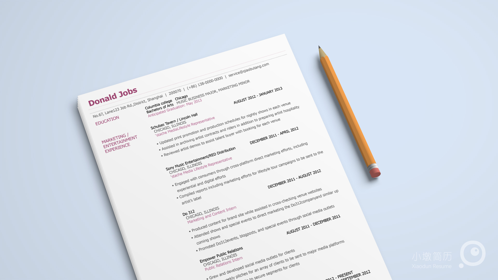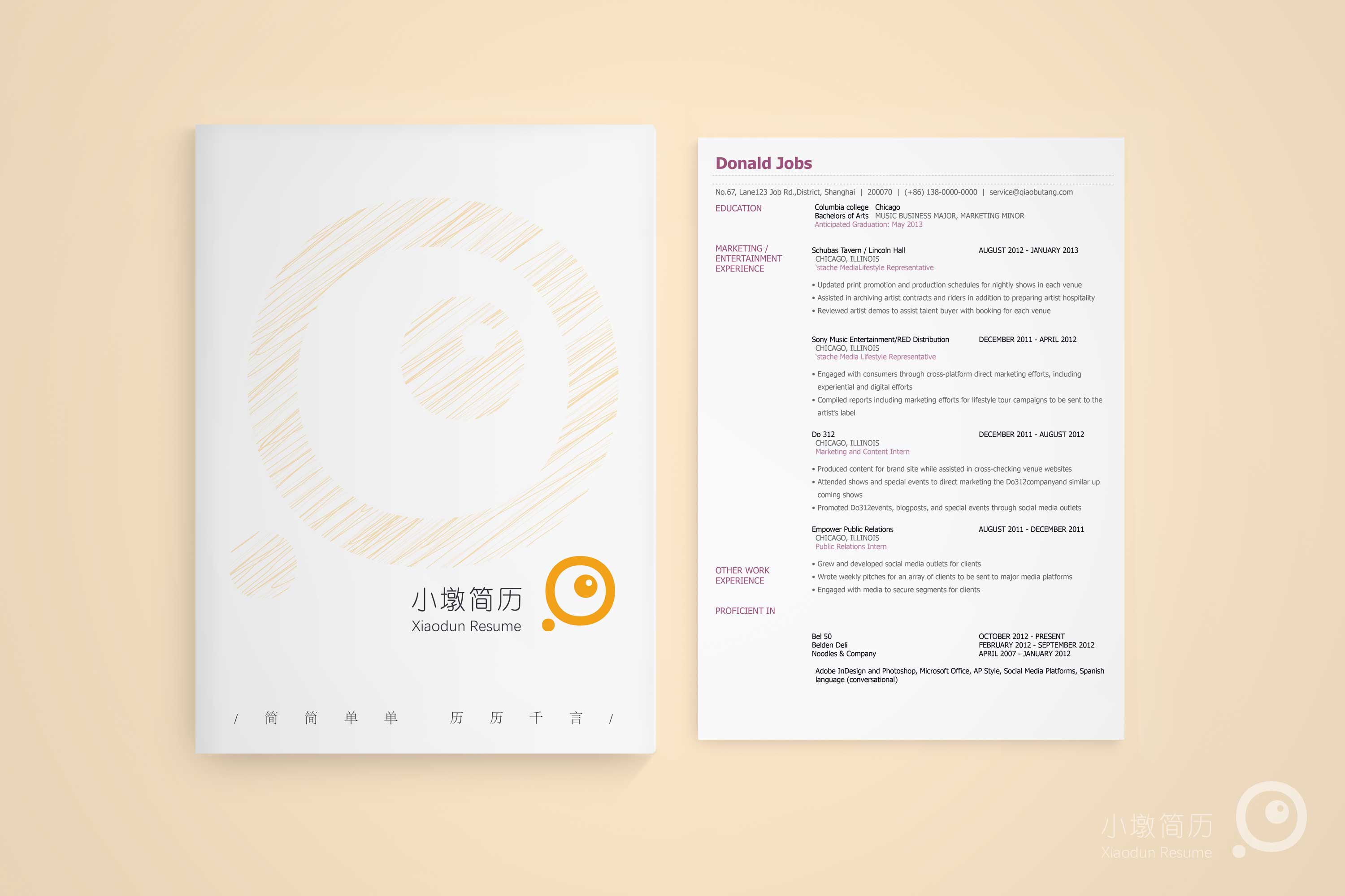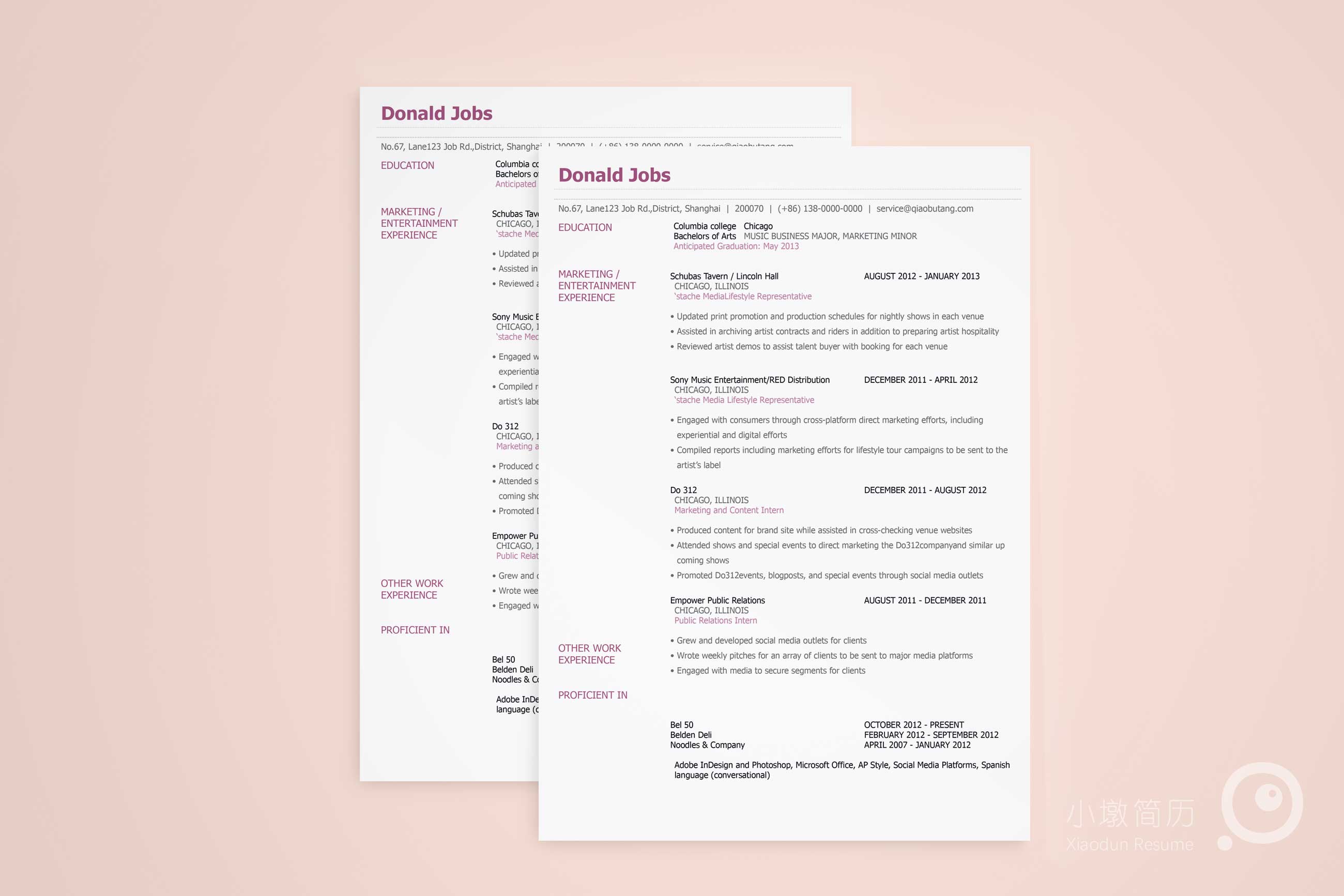 英文商务深紫色简历word模板 小墩简历|word简历模板|ppt简历模板