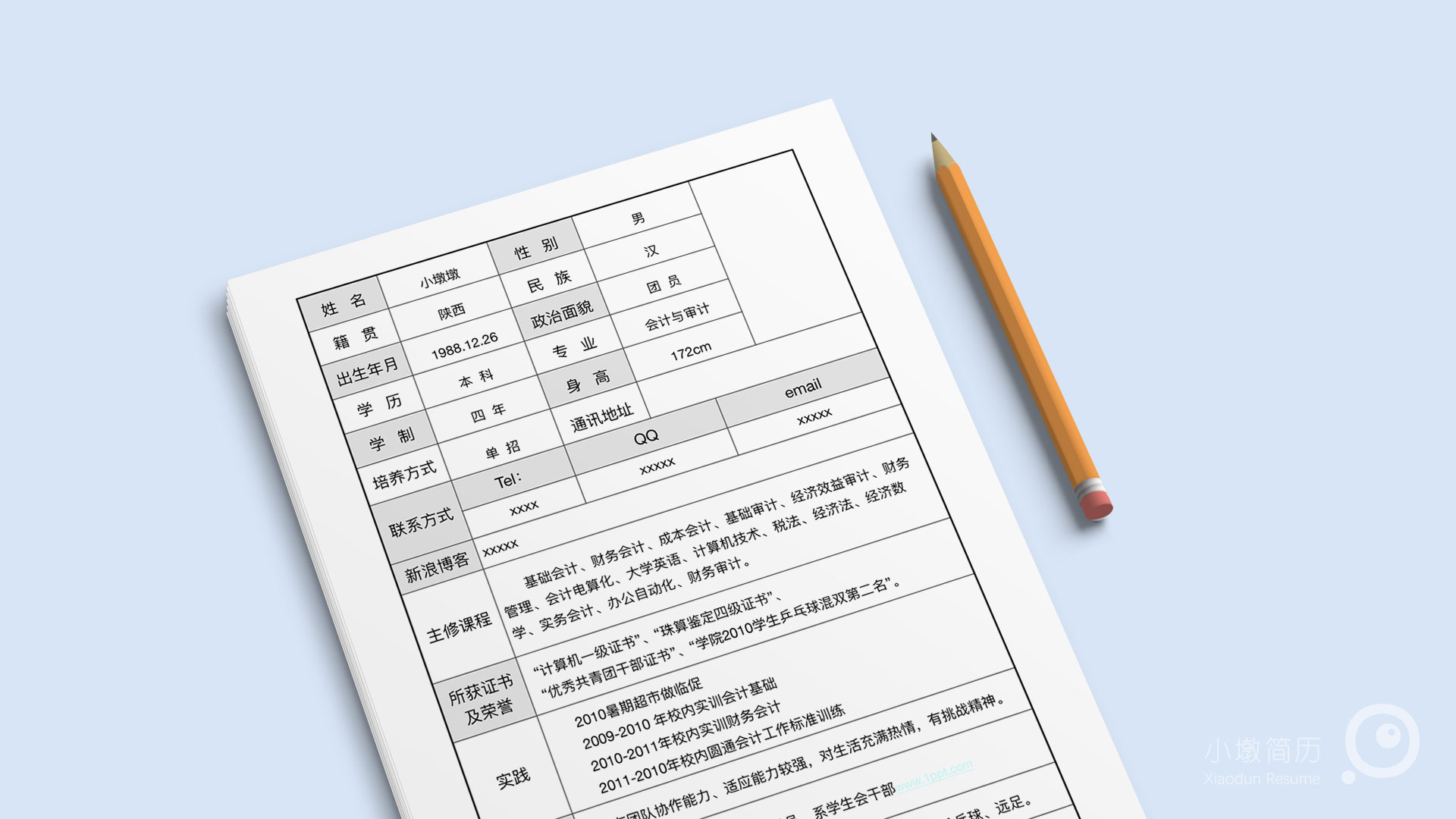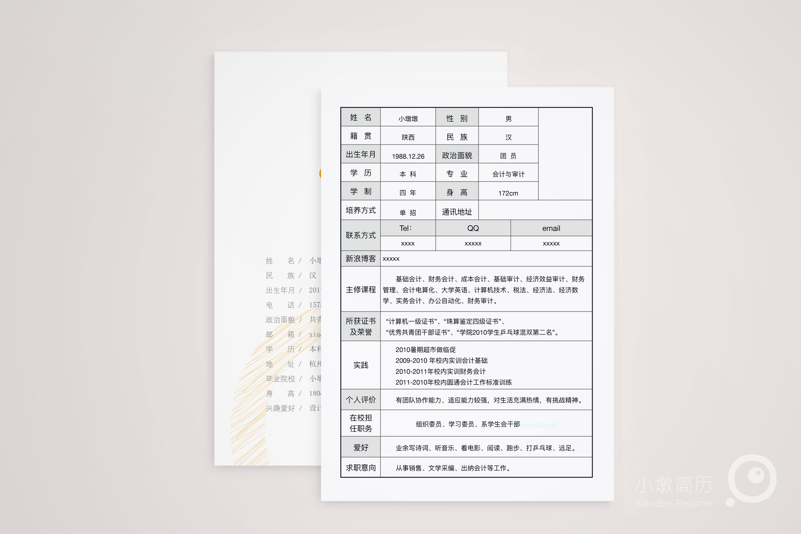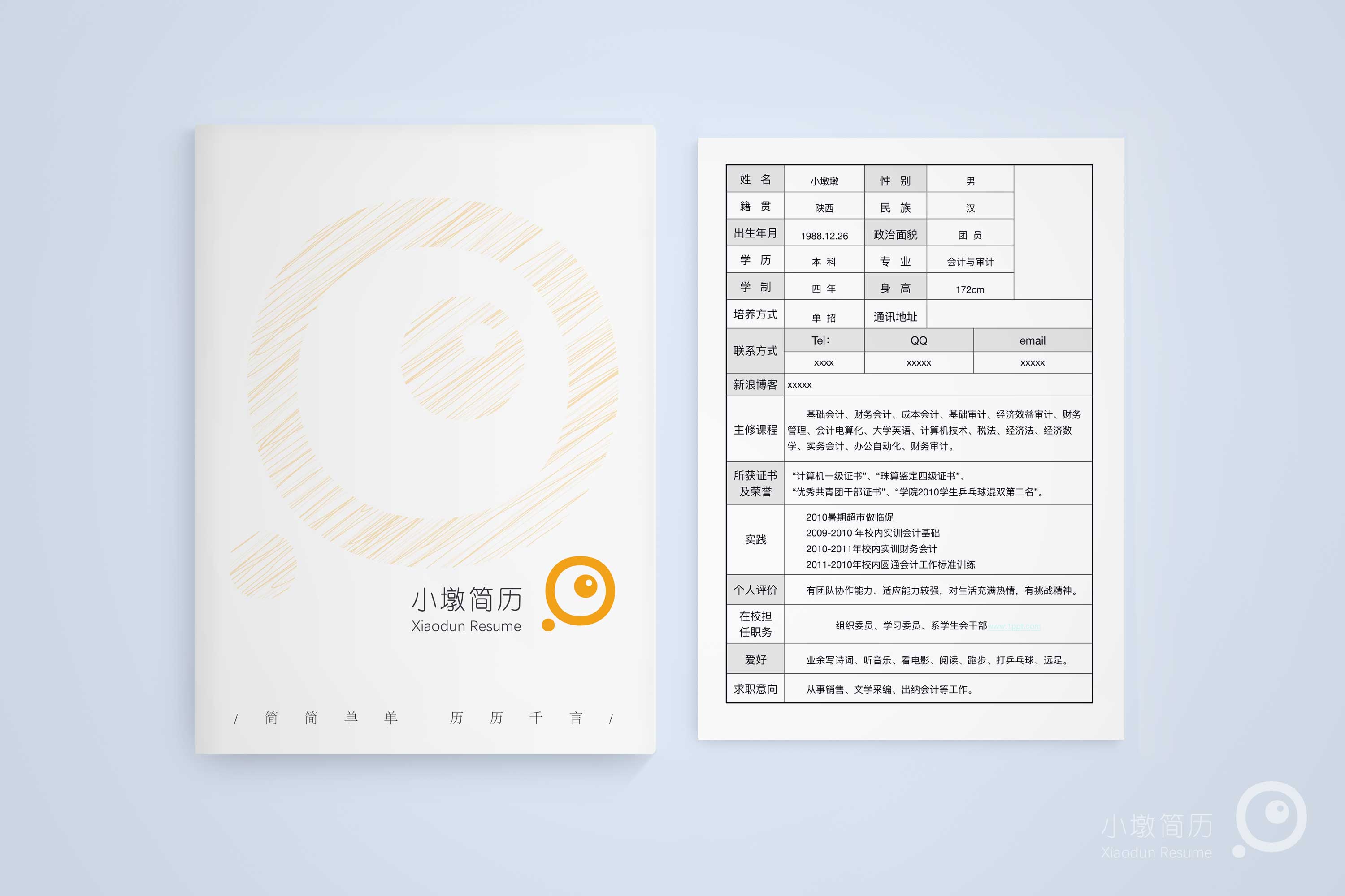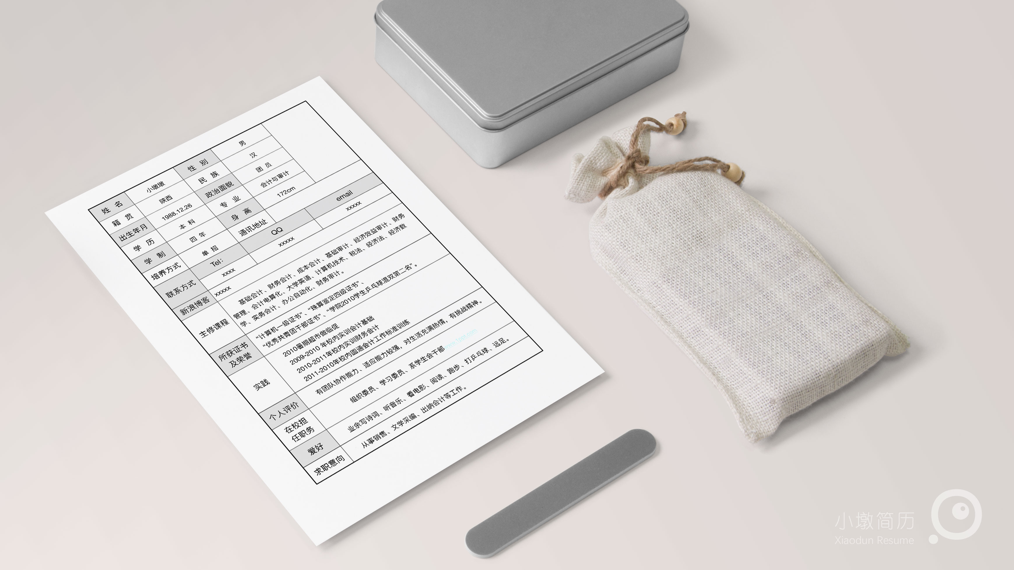 常用个人简历空白求职表格 小墩简历|word简历模板|ppt简历模板