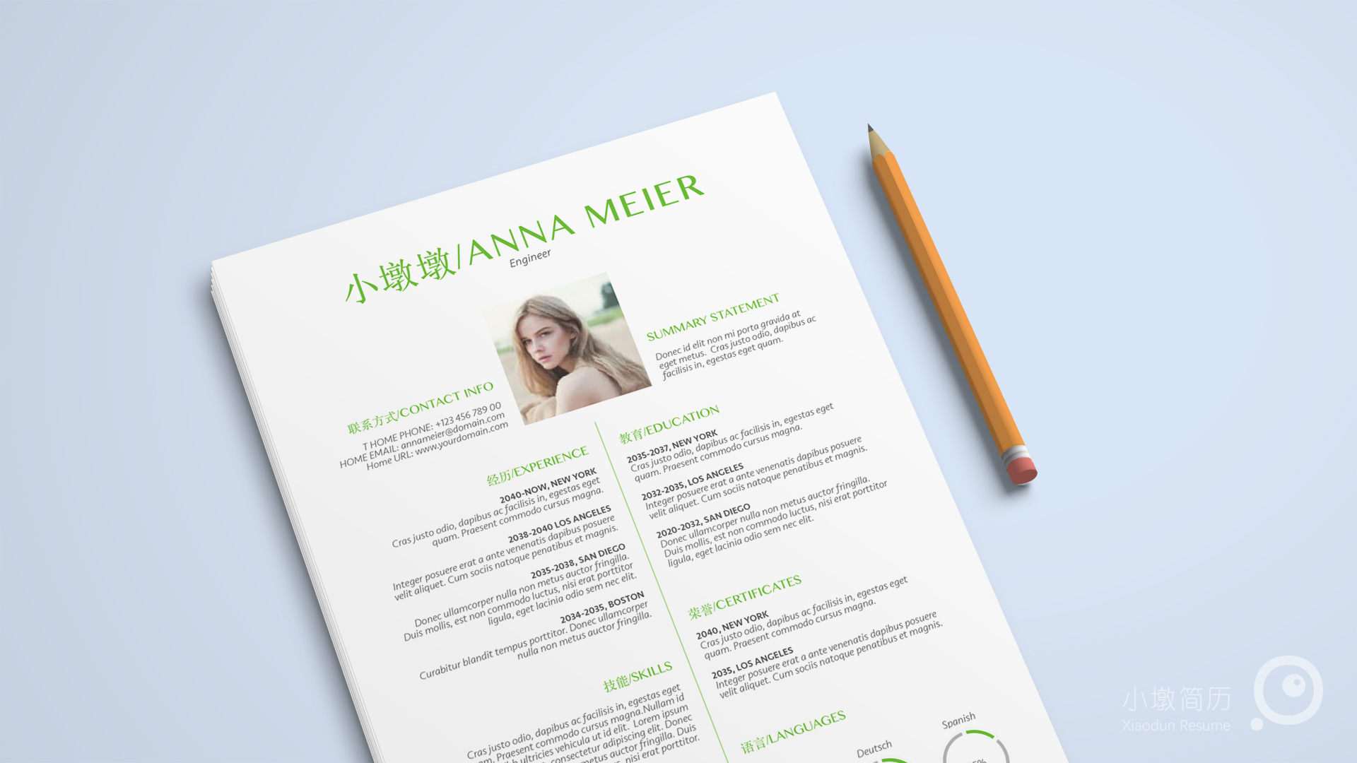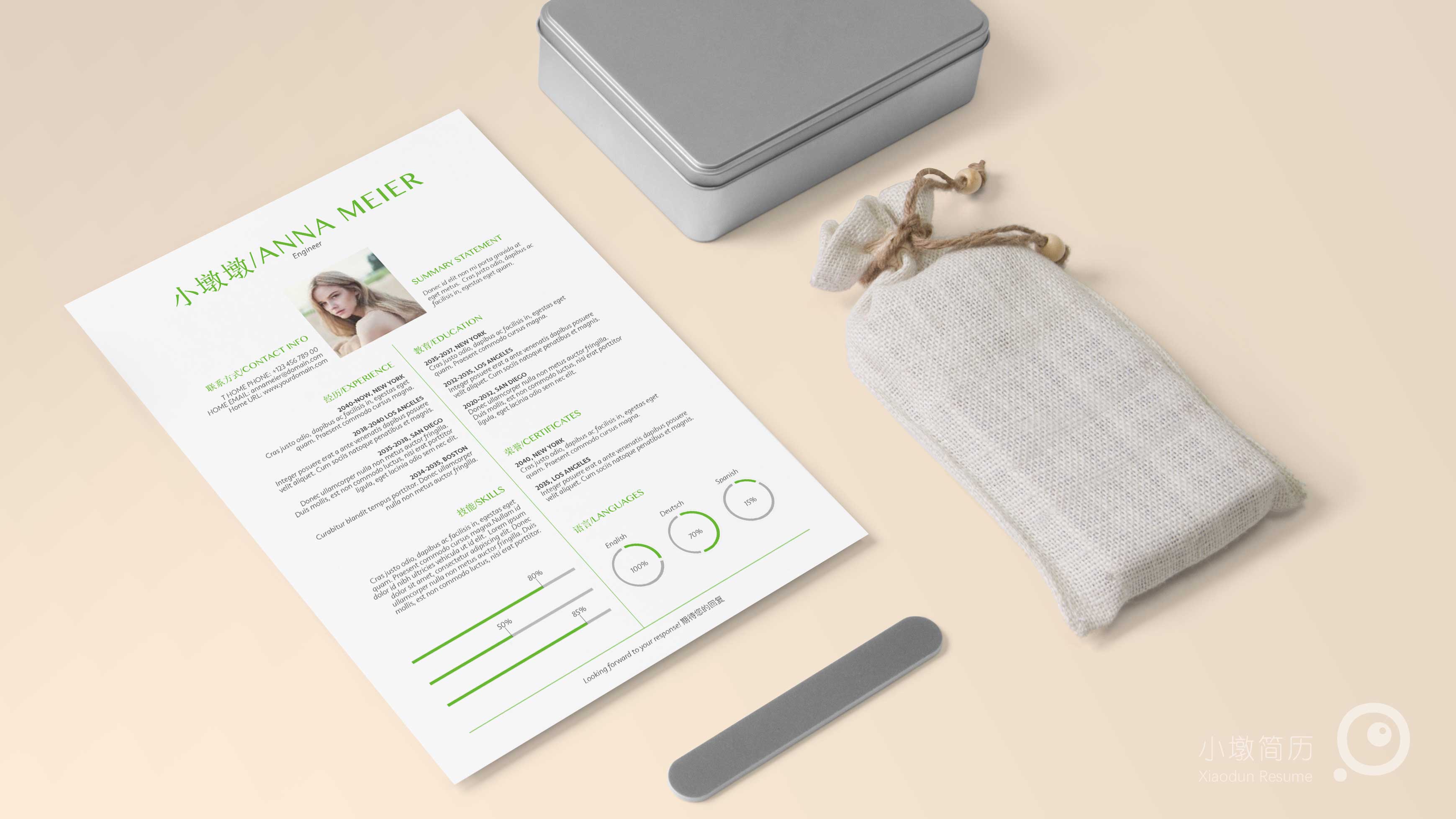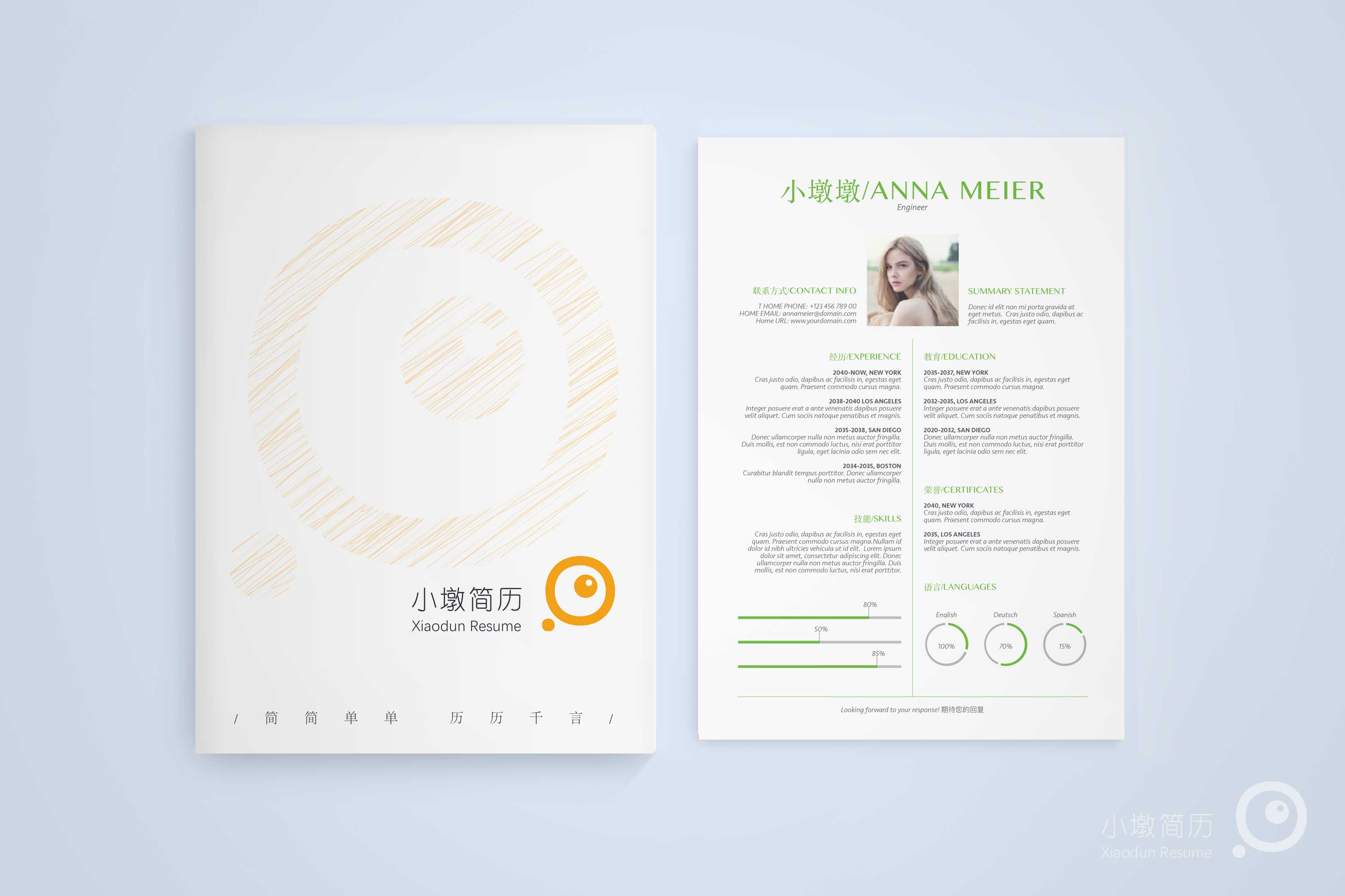 清新简约大气简历绿色word模板 小墩简历|word简历模板|ppt简历模板