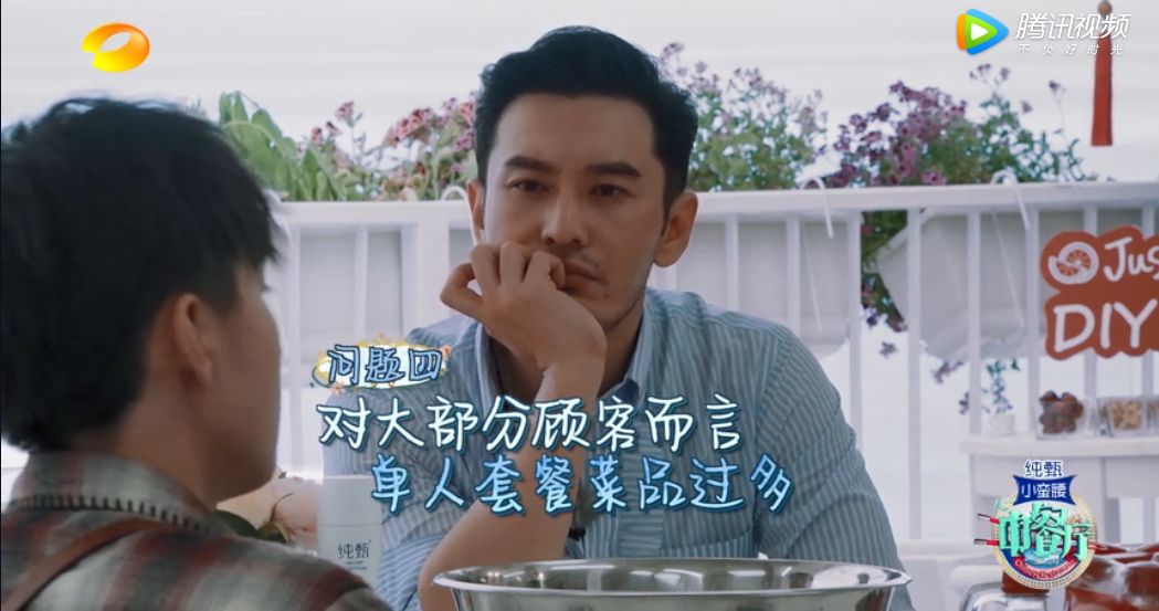 还是说回这一期节目,在这一天的营业结束后,黄晓明让大家对今天的营业提提意见。